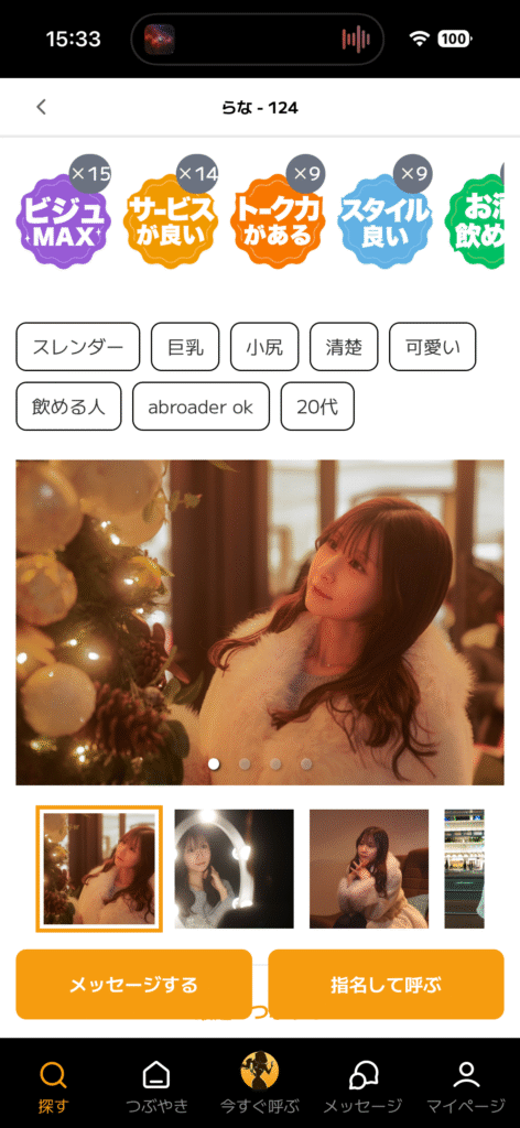 teco(テコ)の使い方はめっちゃ簡単で、らなちゃんのプロフィールページにある『指名して呼ぶ』をポチッと押すだけでOK。