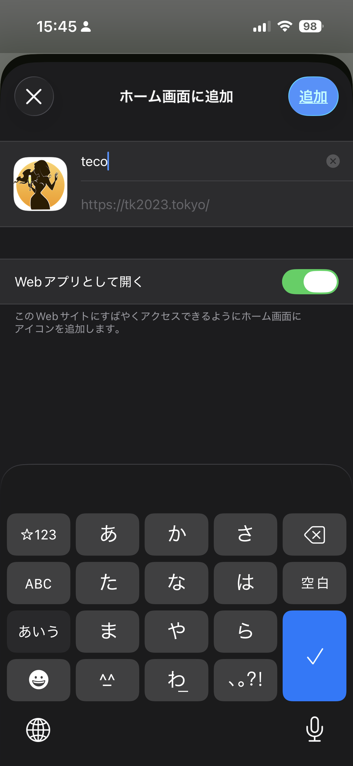 - ブラウザ(Safari)でWEBページを開き、tecoを開きます