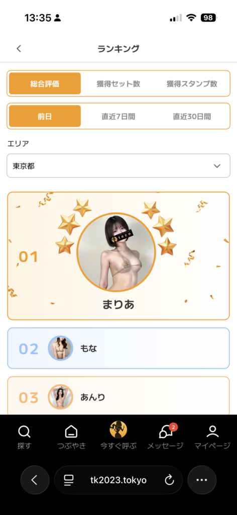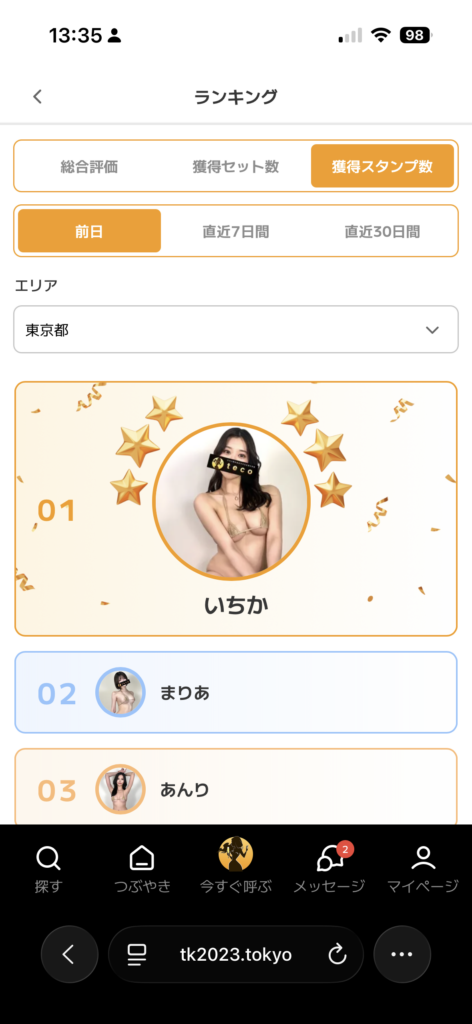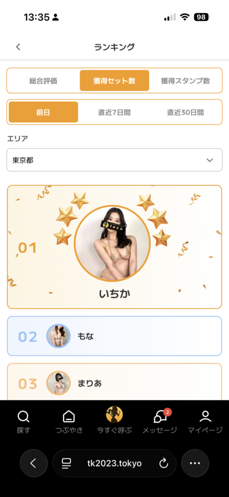 tecoではどんな女の子がいるのか、だけでなくどのような評価をお客様から受けているのかがわかるランキング制度を導入しています。