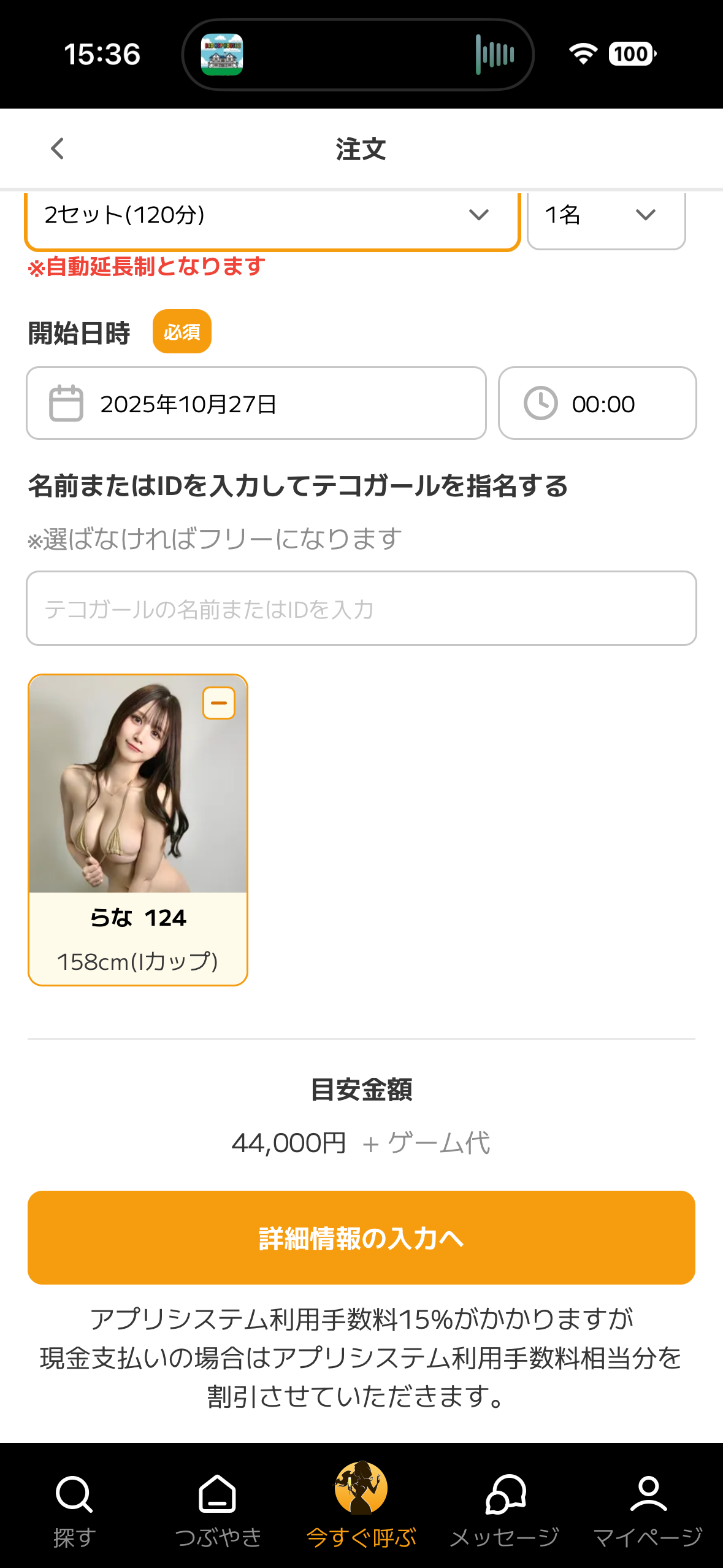 アプリ上で一覧から好みのtecoガールを選んで、「今から呼ぶ」ボタンを押すだけ。