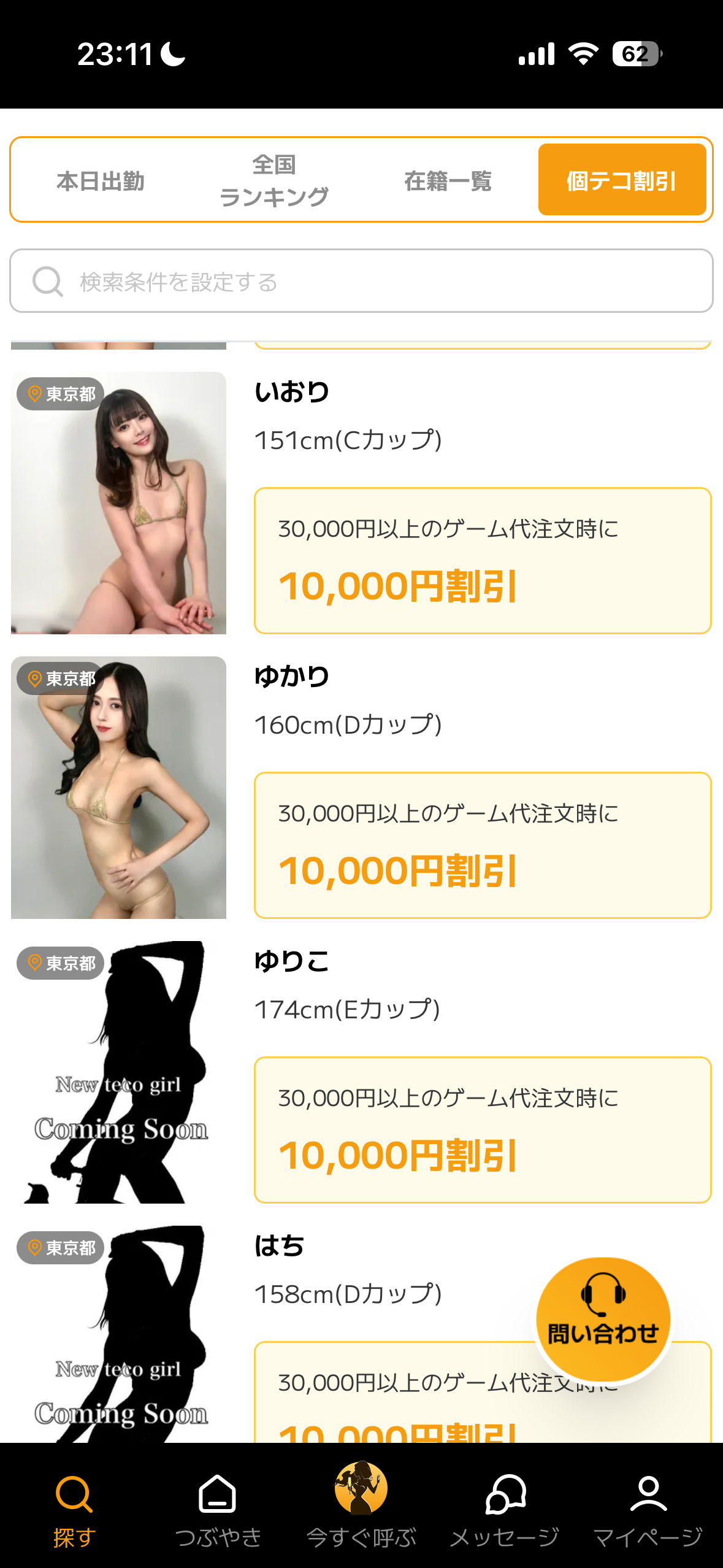 個テコ割引一覧に掲載されている女の子を選ぶ