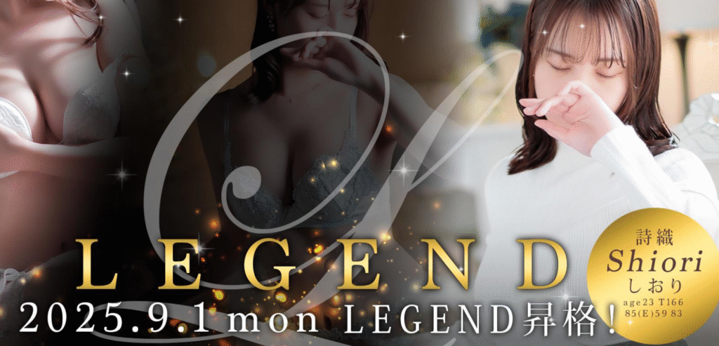 最後に紹介するのは、優美最高クラスのLEGENDクラス。整った顔立ちと魅惑的な身体に予約・リピーターが後を絶たない。プロフィールには顔は載っていませんが、多くのお客様が絶賛していることから全てにおいて満点を叩き出す存在が詩織(しおり)さんです。