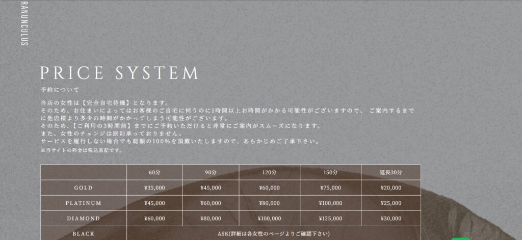 RANUNCULUS(ラナンキュラス)|東京都の高級デリヘルの料金