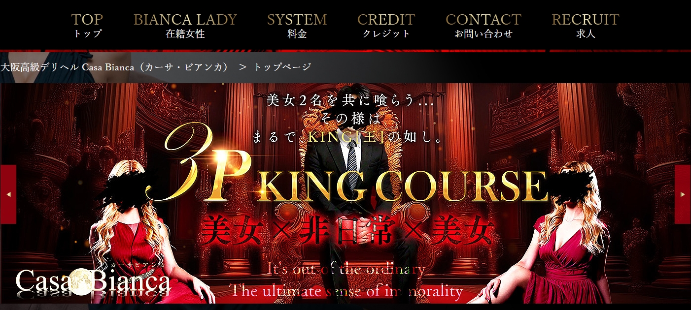 casa Biancaは、ルックス・サービス・満足度すべてにおいて一線を画す、大阪屈指の高級デリヘルです。官能的な淑女とハイレベルなプレイが楽しめる贅沢なひとときは、まさに“男のご褒美”。
